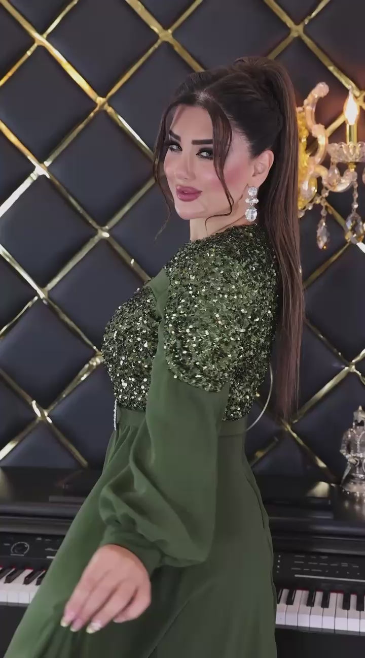 Plus-Size Turkish Modest Dress – Chiffon Wide Skirt & Shiny Bodice