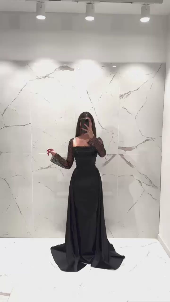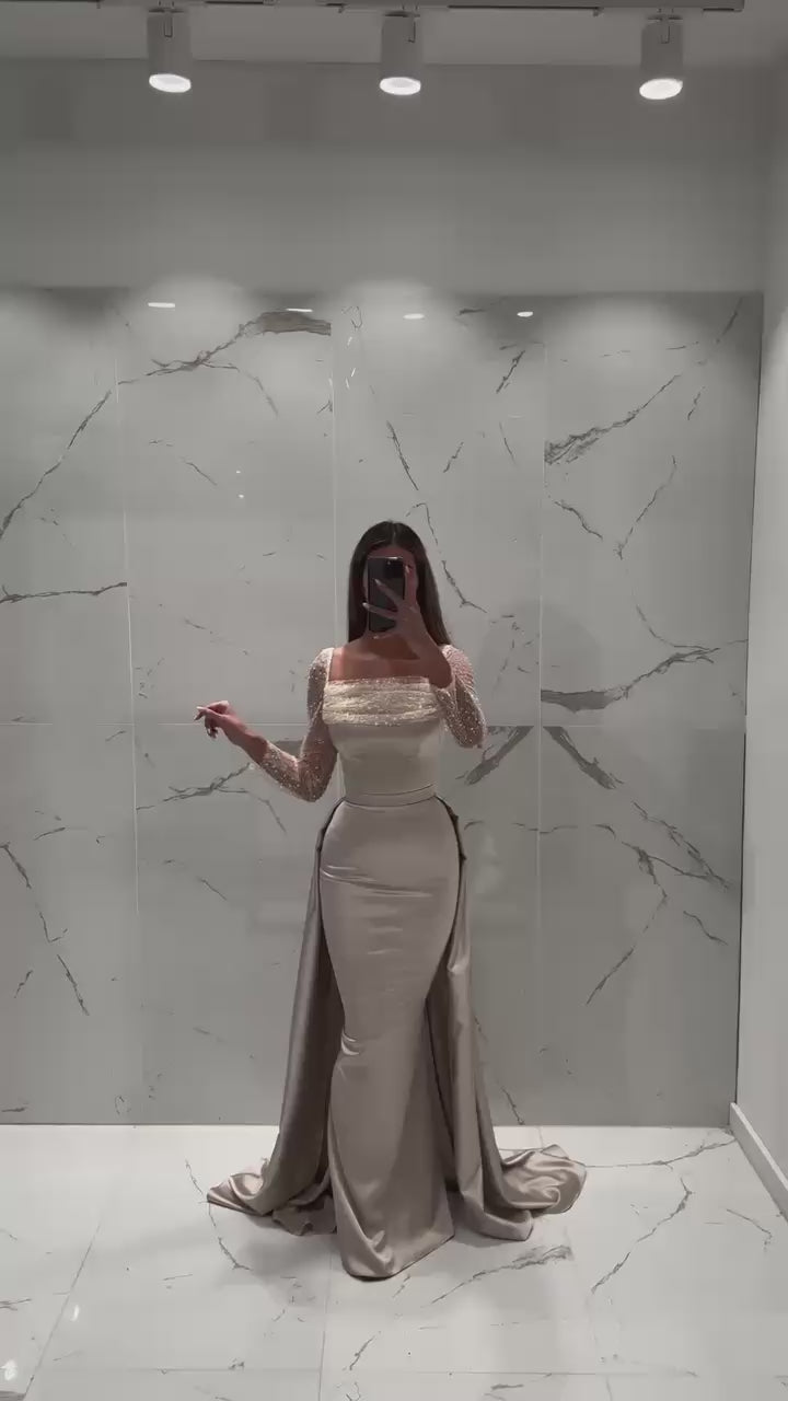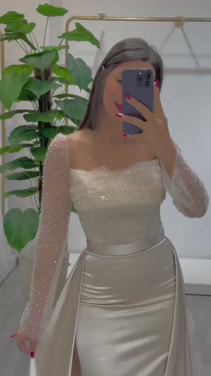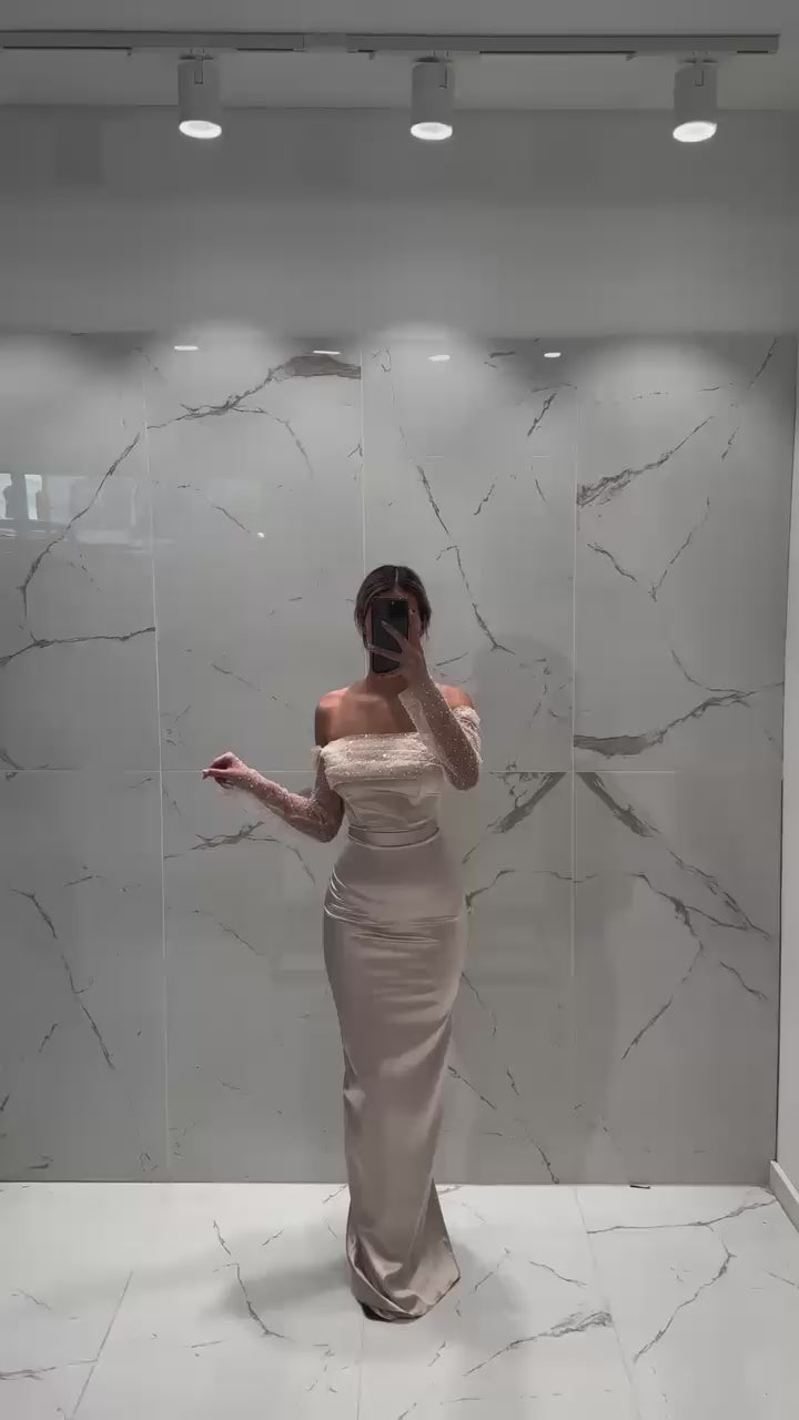 Turkish Evening Dress – Satin & Beaded Lace Top, Two-Piece Design