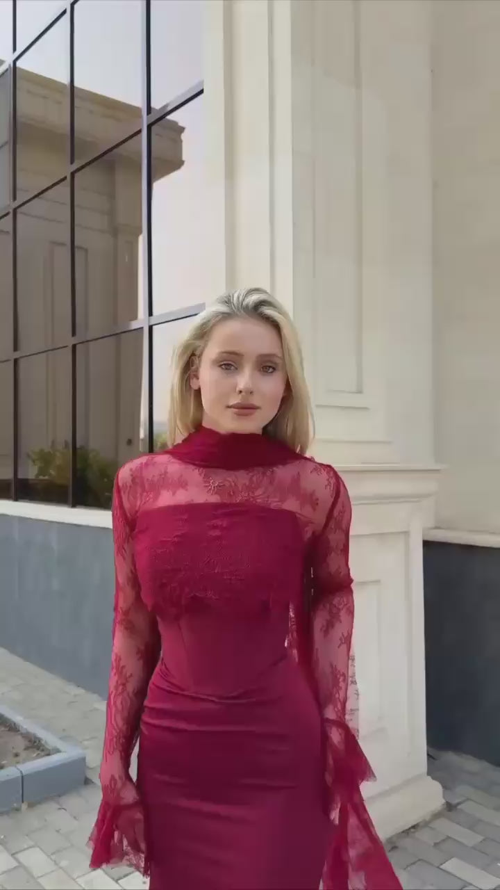Two-Piece Evening Dress – Lace & Turkish Double Fabric